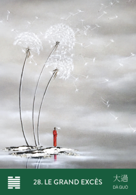 L’hexagramme 28 symbolise un déséquilibre, une surcharge, comparable à un pilier de maison qui supporte plus de poids qu’il ne le peut réellement.